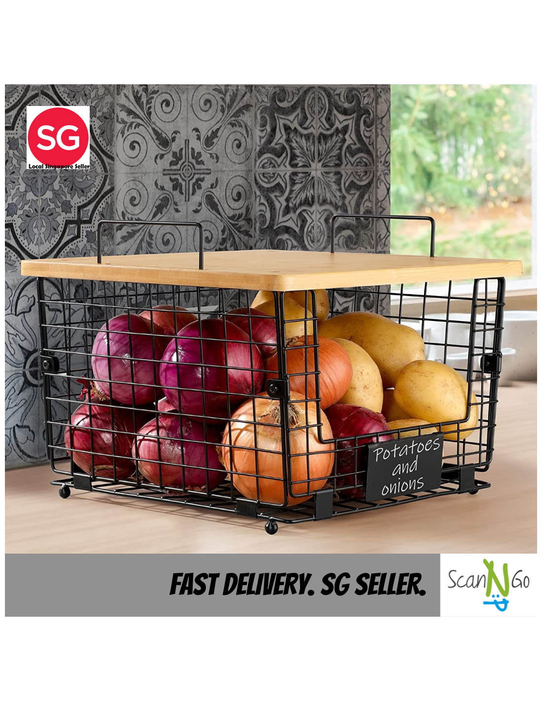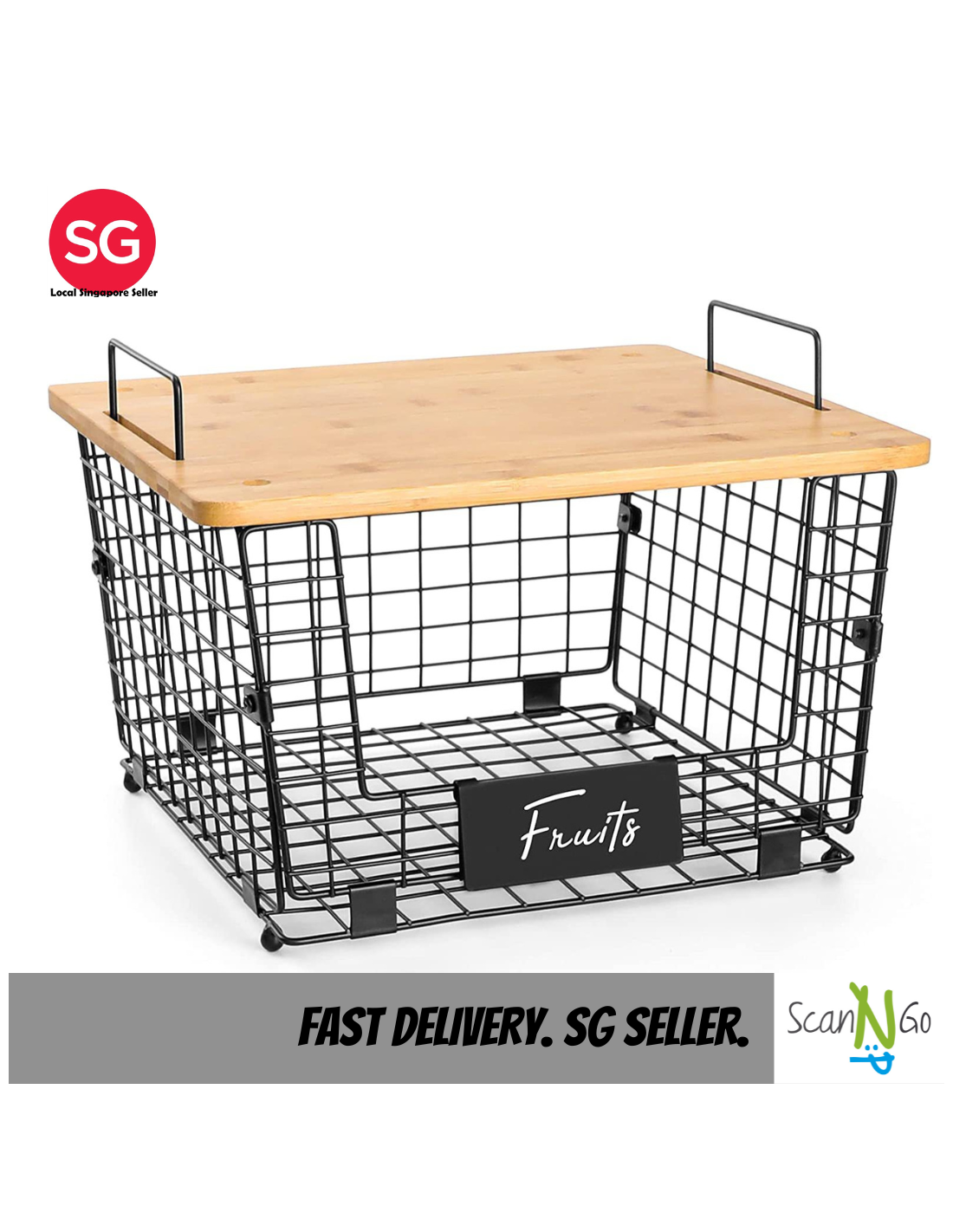 Fruits Vegetables Storage Basket Metal Kitchen Organiser Cutting Board Portable