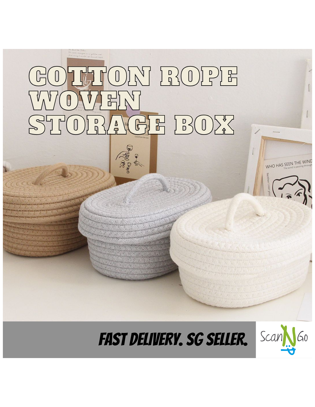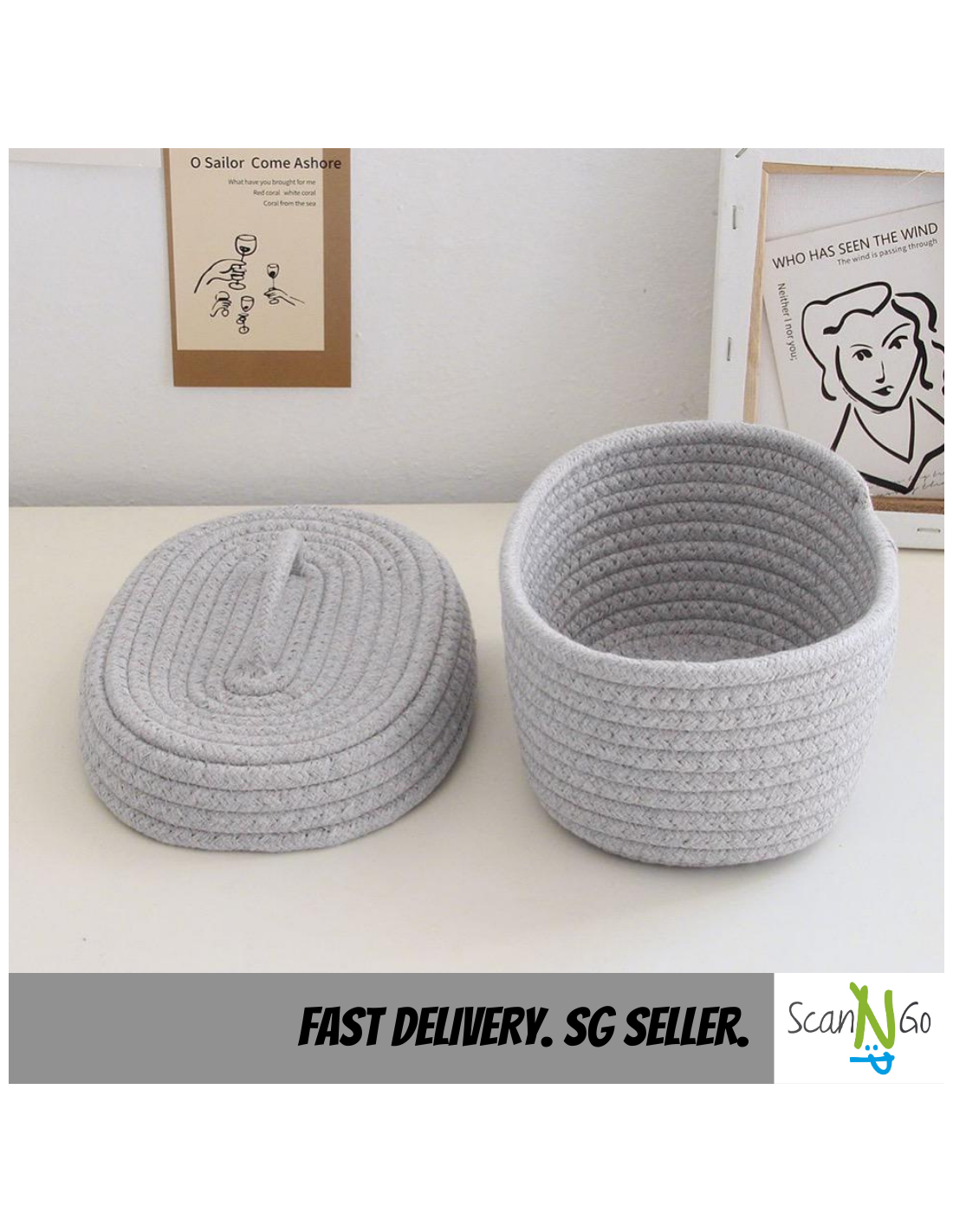 Nordic Style Woven Storage Organiser BASKET Cosmetic Cotton Rope Material with Anti Dust Cover Local Stock