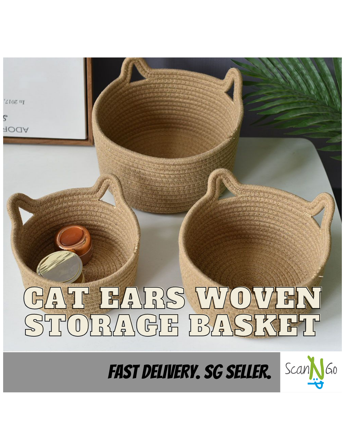 Nordic Style Cat Lovers Ears Shaped Woven Storage Organiser BASKET Cosmetic Cotton Rope Material Local Stock