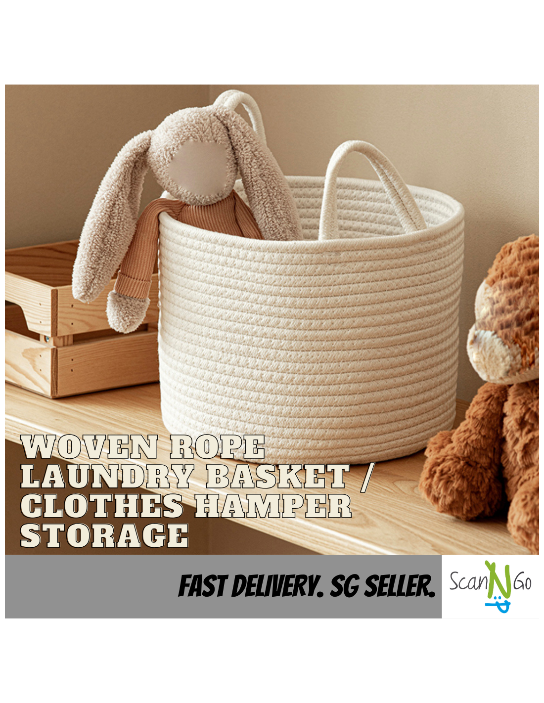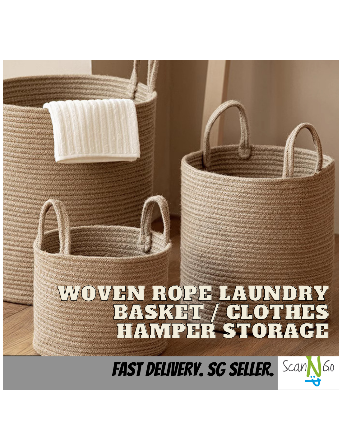 LAUNDRY Woven Rope Storage Basket with Easy Carry Handles Clothes Hamper Nordic Style Perfect for Yoga Mat